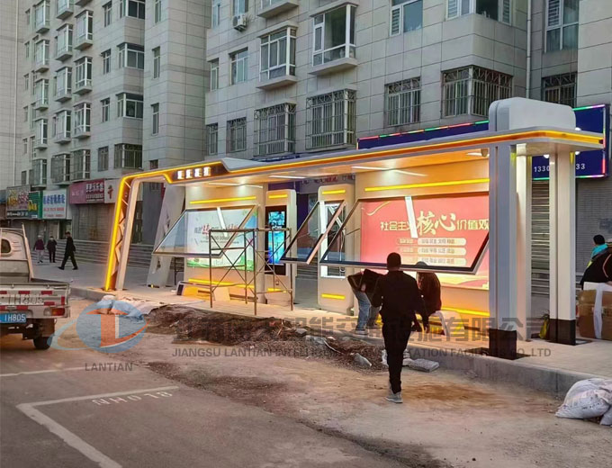 • 城市候車亭發(fā)貨安裝現(xiàn)場(chǎng)
